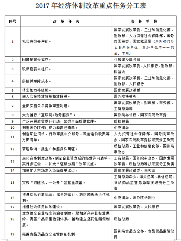 附件:2017年經(jīng)濟體制改革重點任務分工表
